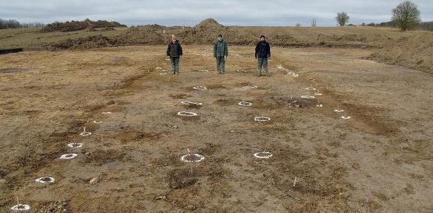 Med Bøgely-udgravningen er sæsonen for motorvejsgravning for alvor skudt i gang igen. Her skal udgraves knap 1,8ha på et større højtliggende plateau. Udgravningen er delt op i tre felter og på oversigtskortet kan man se de to først åbnede felter mod øst. Her er der spor efter 9 langhuse (omfang af huse er markeret med gråt) og flere små staklader. De fleste huse dateres til yngre jernalder men på det vestligste felt ses to huse fra den ældre jernalder. Dermed sagt at der har været beboet i en længere periode på dette sted lige sydvest for Låsby. Senest i middelalderen er bebyggelse igen opgivet. Det kan vi se ud fra de mange agerrener som særligt præger det vestligste område. Det er her omtrent N-S-gående ”grøfte” som er spor efter middelalderens højryggede agersystem. På bøgely ligger de med 7-9m’s afstand.