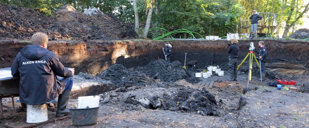 The 2013 excavations at Alken Wetlands lasted from July 15th to September 20th. The weather was fine without being too hot. Once the preliminary preparations such as the establishment of offices and staff facilities, the building of a bridge across the channel, water pumps and electricity were in place, the excavations continued from where we had left off the previous year. Part of the 2012 excavation area was re-dug in order to provide us with a workplace from which we could open new areas for investigation.