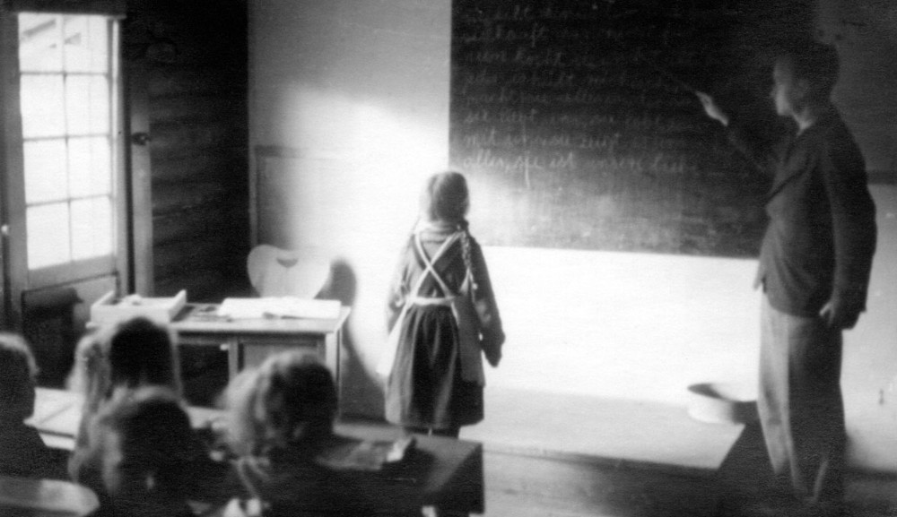 Billede: Tyske flygtningebørn undervises i den bygning, der i dag er Danhostel Skanderborg.
