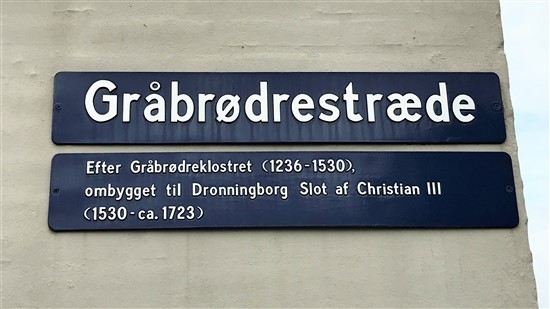 Franciskanermunkekloster. Klostret blev grundlagt i 1236. Klostret blev nedlagt i 1530 og al dens ejendom blev overdraget til rigshofmester Mogens Gøye, som sørgede for at kirken fik anvendelse af byens borgere. I 1554 blev klostret overdraget til kronen, for at blive omdannet til den kongelige borg, Dronningborg. Kirken blev omdannet til slotskirke og sognekirke og fungerede, som sådan frem til 1698. Dronningborg Slot blev nedrevet i 1721.