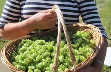 Årets humlekopper er store og flotte. To store kurve er høstet her i de fine dage i september.
