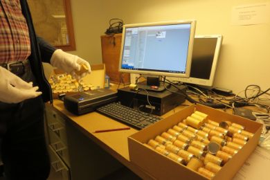 Arkæologerne på museet er nu gået i gang med at undersøge materialet fra Alken Enge. Følg deres arbejde på museet.