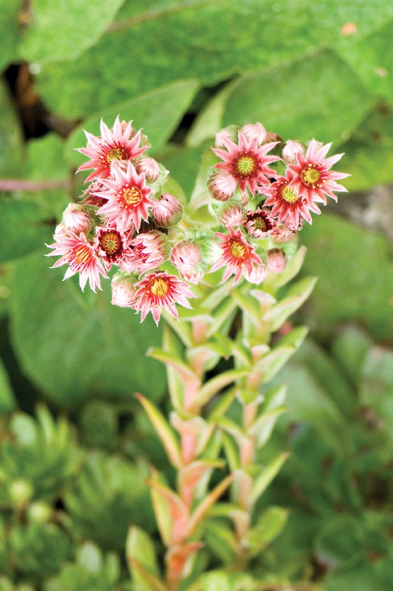 | Beskrivelse | En flerårig plante med talrige rosetstillede, tykke og saftige, elliptiske, brodspidsede og randhårede blade og en 20-40 cm høj stængel med spredte, aflange blade og en grenet stand af små røde blomster. Husløg blomstrer i juli-august. Planten findes vildtvoksende bl.a. på klippegrund i Pyrenæerne og i Alperne. I Danmark forekommer husløg som prydplante i haver. |
