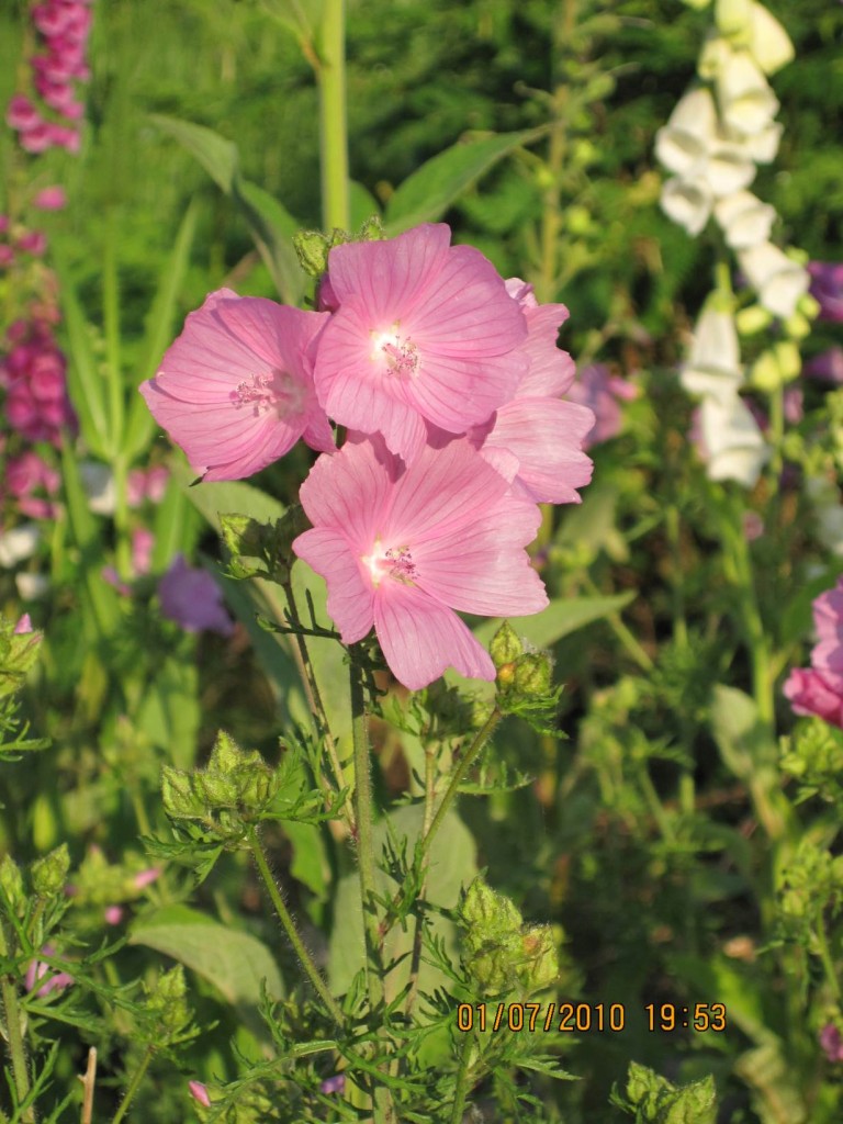 Flerårig, ruhåret plante med stive, oprette stængler. Bladene er spredte, afrundede, men håndfligede med 5-7 ret spidse, fjerlignede afsnit. De øvre blade er dybere indskåret end de nedre og med smallere afsnit. De lyserøde eller hvide blomster er 3-6 cm i diameter og sidder enkeltvis i de øvre bladhjørner. Frugten består af en ring af smånødder omgivet af et bæger. Planten, der har en svag moskusagtig lugt, blomstrer juli-september. Den kan findes langs vejkanter, i enge og på græsområder. |